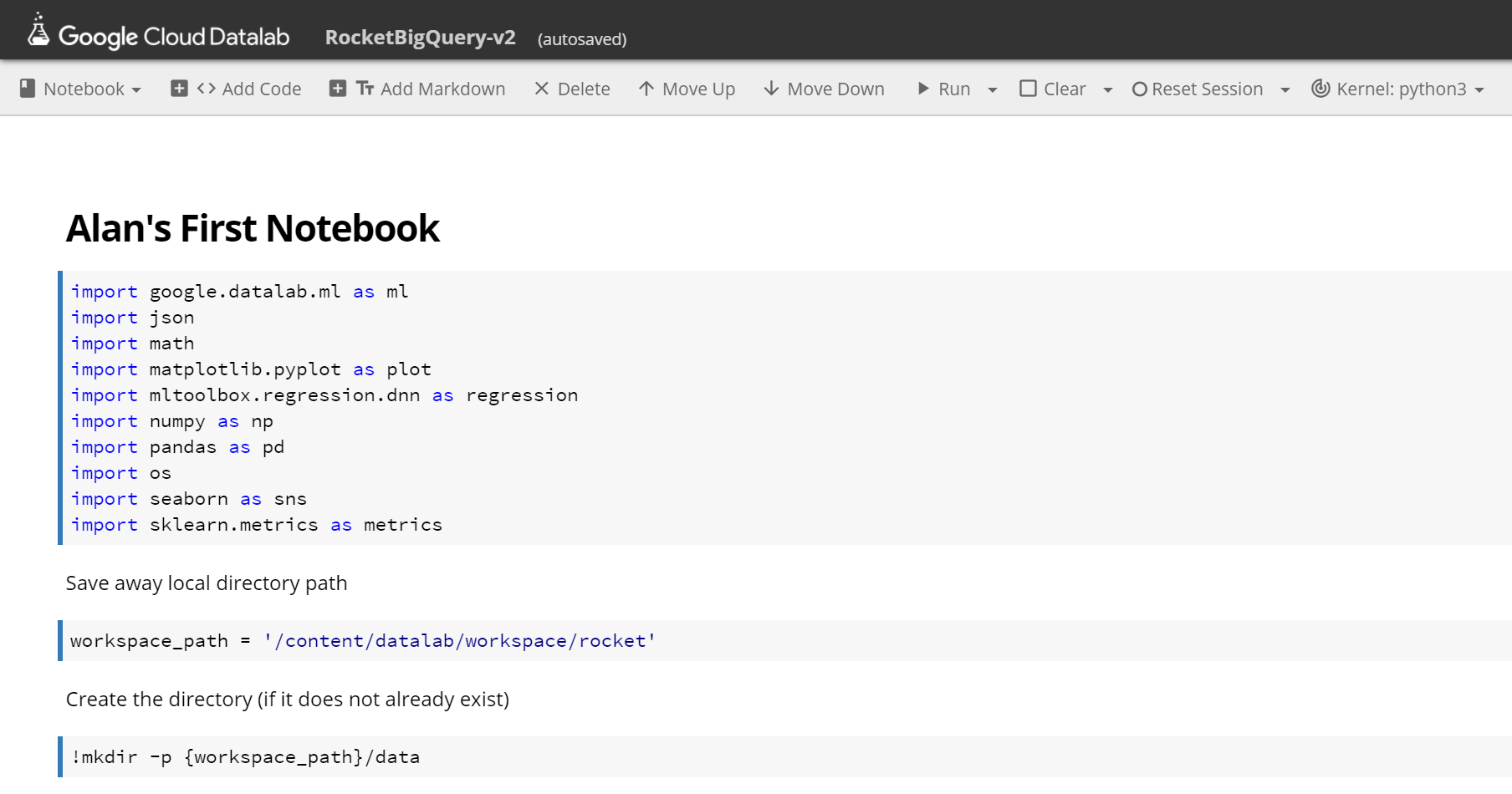 In this post I am going to be using Jupyter, as provided by Google Cloud as a part of Google “Datalab”. This allows you to write Python code in a page with calls off to BigQuery (to fetch data) and TensorFlow (the Google Machine Learning platform for dealing with very large data sets). I am not going to use TensorFlow in this blog post, just Jupyter. Note however that Jupyter is open source and used by a range of different projects.