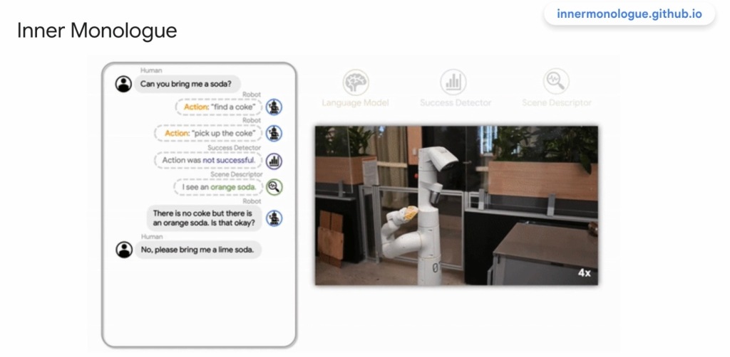 For example, the vision component can answer what it sees in a scene, describing objects and their positions. The planning component can show how it broke down a request (“make me a cup of coffee”) into a series of individual actions (“I am going to turn the kettle on, I am going to locate a cup, I am going to select the coffee to use, …”). It was understandable to humans. Personally I find that useful. It opens up new opportunities for insights and debugging, both of which I think matter in production.